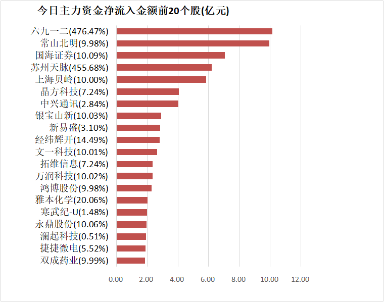 今日A股市場主力資金開盤凈流出284.25億元,尾盤凈流出24.07億元,A股市場全天主力資金凈流出539.51億元。