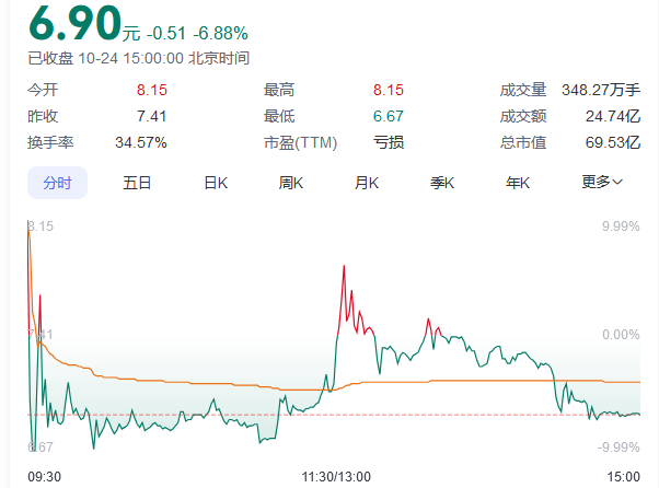 近日四連板的華東重機開盤即漲停,隨后直線跳水,觸及跌停,盤中上演“天地板”走勢。收盤下跌6.88%,換手率超34%。