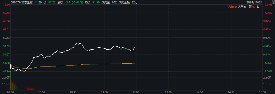 諾泰生物今天上午盤中一度大跌逾19%,后跌幅明顯收窄。